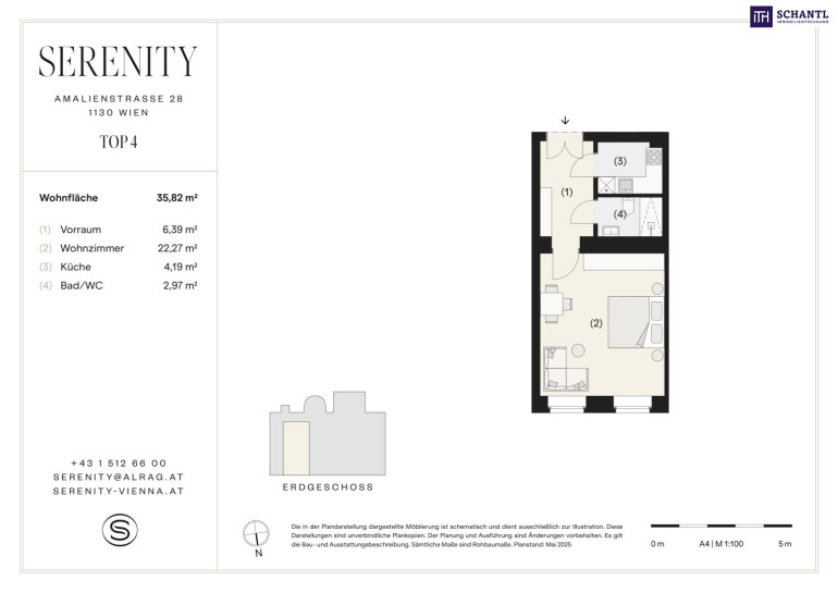 Ihre neue Wohnung wird Sie restlos begeistern und teilt sich in einen kleinen Vorraumbereich mit Platz für eine Garderobe, eine separate Küche, ein stylisches Badezimmer mit Walk-In Dusche und WC sowie ein geräumiges und gemütliches Wohn-Schlafzimmer mit einer wunderschönen Flügeltüre.