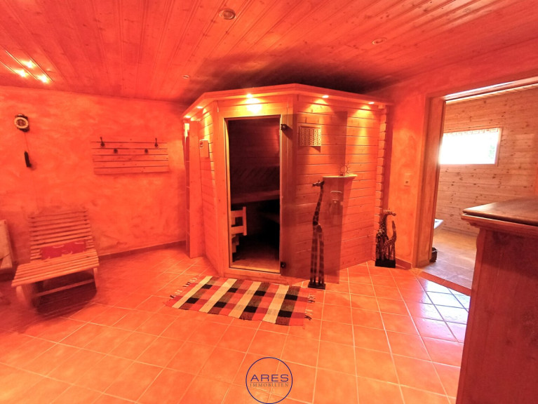 Dieser 1998 errichtete Elk-Bungalow wurde mit viel Liebe zum Detail immer weiter ergänzt ... eine Doppelgarage angebaut, ebenso eine Orangerie, in welcher neben heiklen Zitrusfrüchten auch viele weitere Pflanzen gefahrlos überwintern können, ein großer Swimmingpool, eine Sauna mit großzügigem Freizeitraum, Fitnessraum, Werkstatt für den Hobby-Handwerker ... alles mit besten Materialien perfekt ausgestattet.