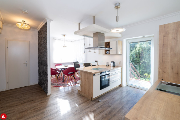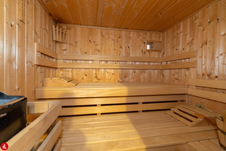 Fliesen, Kunststoffboden, Öl, Einbauküche, Wohnküche / offene Küche, Südbalkon, Dusche, Garage, Swimmingpool, Alarmanlage, Sauna