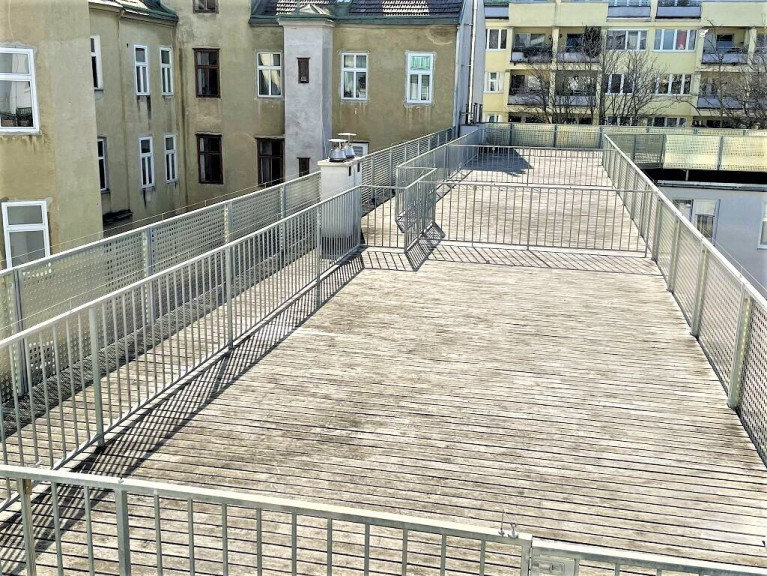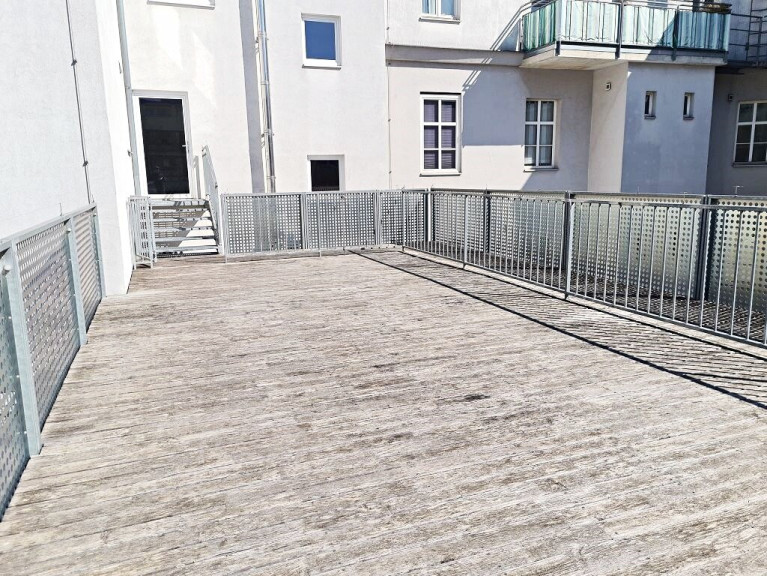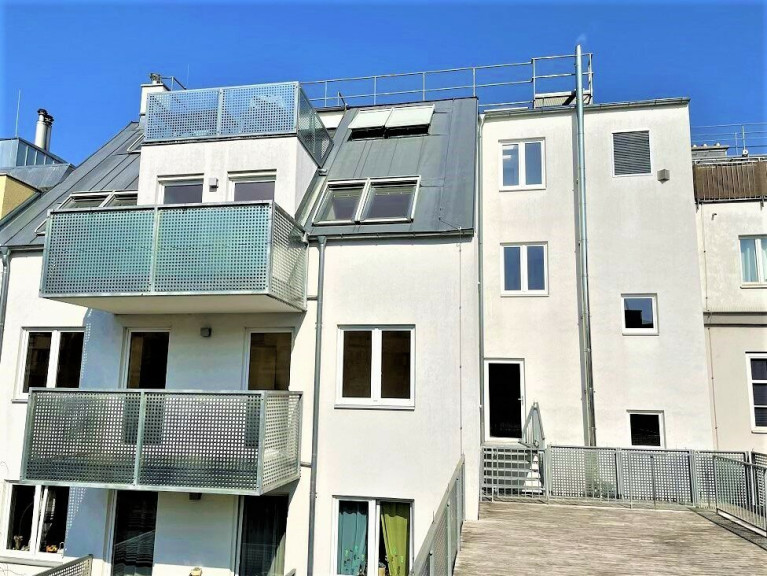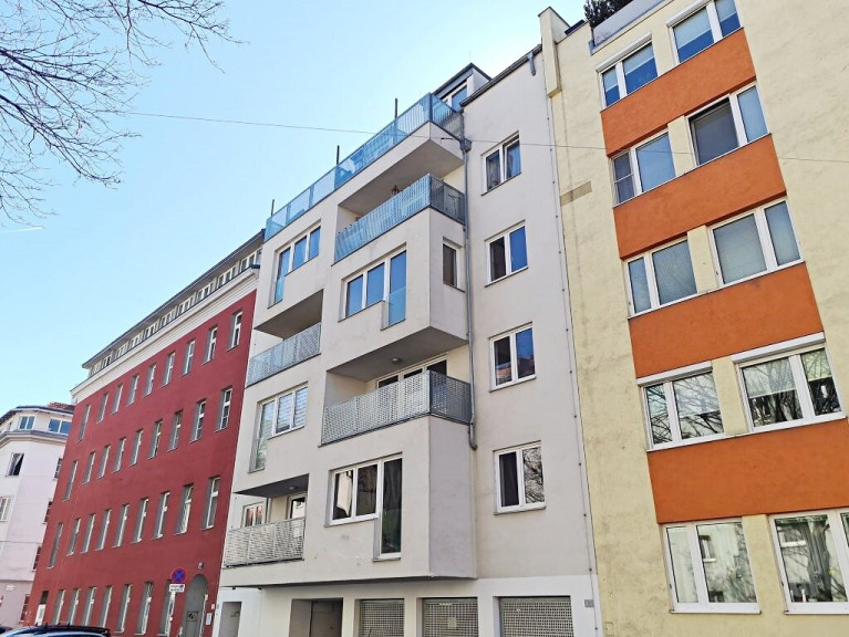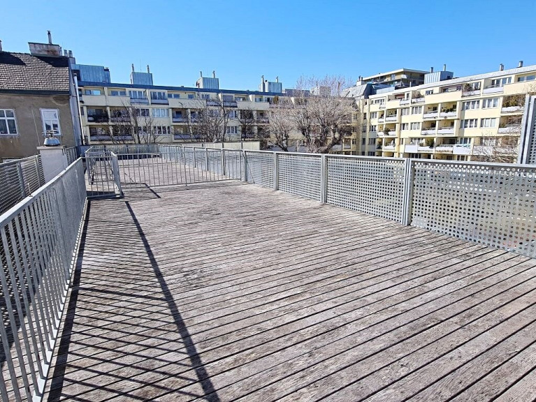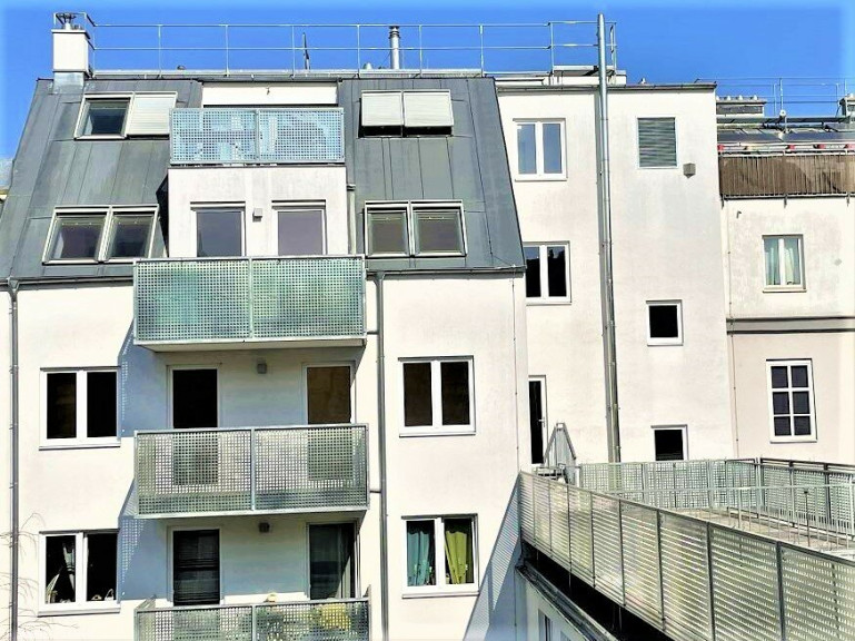 TERRASSENHIT, U3-Nähe, gepflegte 61 m2 Neubau mit 45 m2 Terrasse, 2 Zimmer, Einbauküche, Wannenbad, 3. Liftstock, Lorystraße