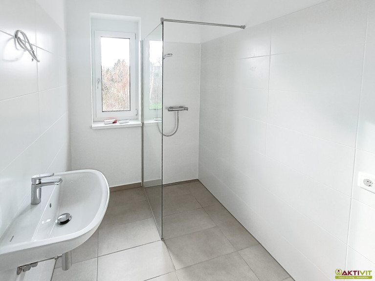 Fliesen, Parkett, Fußbodenheizung, Bad mit Fenster, Dusche, Carport