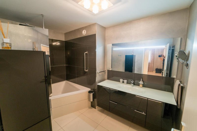 Fliesen, Fernwärme, Wohnküche / offene Küche, Personenaufzug, Badewanne, Garage, Sauna, Swimmingpool