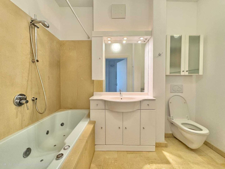 Fliesen, Steinboden, Gas, Fußbodenheizung, Zentralheizung, Wohnküche / offene Küche, Personenaufzug, Westbalkon, Badewanne