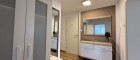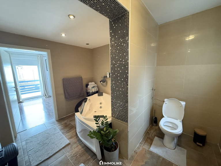 Diese Einheit verfügt über einen großzügigen Wohn-/Essbereich (ca. 30 m²) mit Zugang zur Küche inklusive maßgefertigter Einbauküche. Ein großes Schlafzimmer mit direkter Verbindung zu einem Badezimmer inklusive Whirlpool schafft hohen Wohnkomfort. Ein weiteres Zimmer (Kinder-/Arbeitszimmer) sowie ein separates WC ergänzen diese Wohneinheit. Das Highlight ist der etwa 37 m² große Balkon mit schönem Ausblick. Bei Bedarf lässt sich die interne Trennung zum Stiegenhaus durch kleine Adaptierungen noch optimieren.