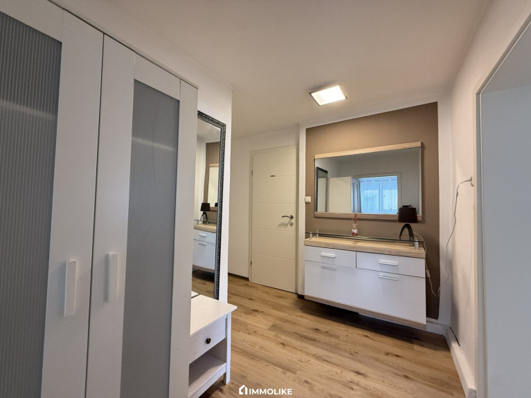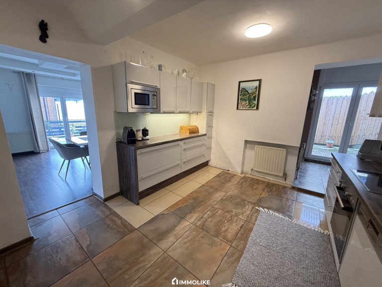 Kompakte Einheit mit Wohnküche, Schlafzimmer und eigenem Badezimmer. Das WC befindet sich im Allgemeinbereich. Vom Schlafzimmer gelangt man direkt auf eine Terrasse mit direktem Zugang zum Garten – ein besonderer Vorteil für Mieter oder Bewohner.