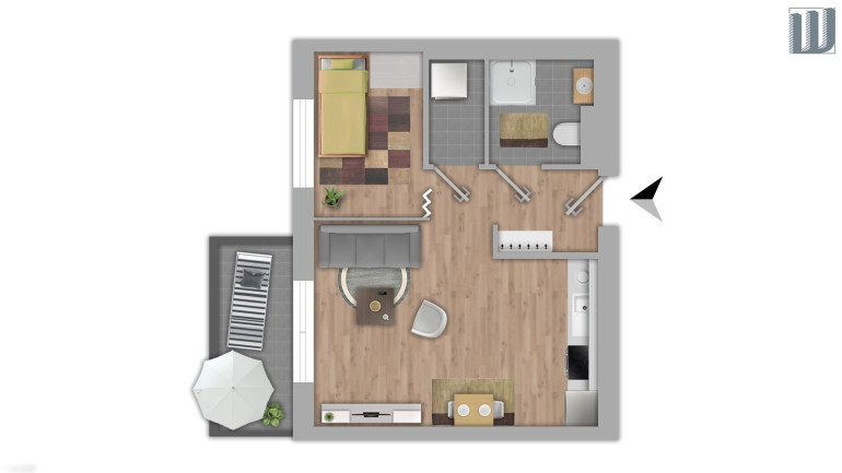 Sehen Sie sich auch gerne den 360-Grad Rundgang von einer der Nachbars-Wohnung mit gespiegeltem Grundriss an!