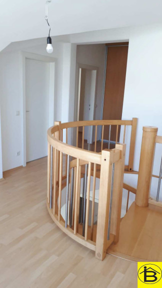 Über eine Wendeltreppe gelangt man in das Obergeschoß mit einem zentralen Vorraum mit Ausgang auf die Terrasse, Badezimmer, WC sowie 2 weitere Schlafzimmer.