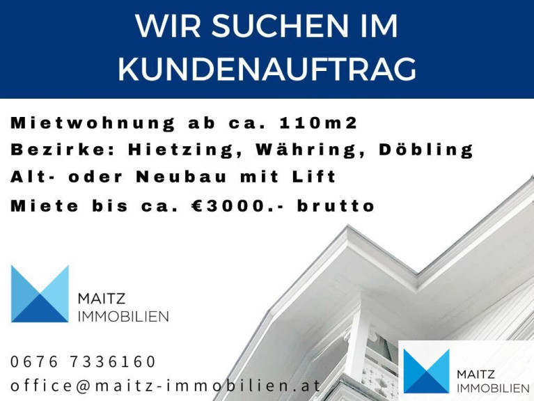 WIR SUCHEN: Miete bis ca. 3.000.- in 1130, 1180, 1190