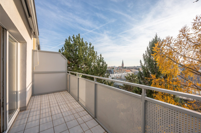 - Lage im Dachgeschoß ohne Lift (3. Stock), rund 52 m² Wohnnutzfläche und 7,6 m² Süd/West-Terrasse