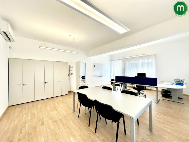 • ein Obergeschoß mit 5 Bürozimmern sowie einer Küche mit Essplatz und Toilette