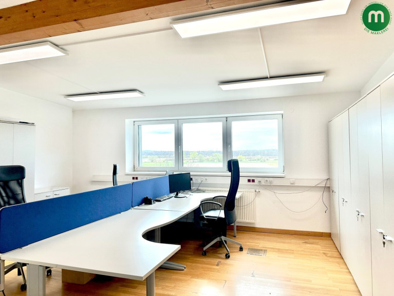 Zur Vermietung gelangt ein Betriebsgebäude mit 390 m² Bürofläche auf 2 Geschoßen + 1.000 m² Lager.