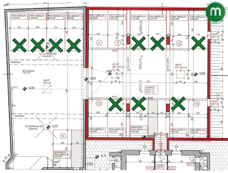 - ein behindertengerechter Parkplatz momentan verfügbar (4,80 x 3,50 m; € 120,- brutto/Monat)