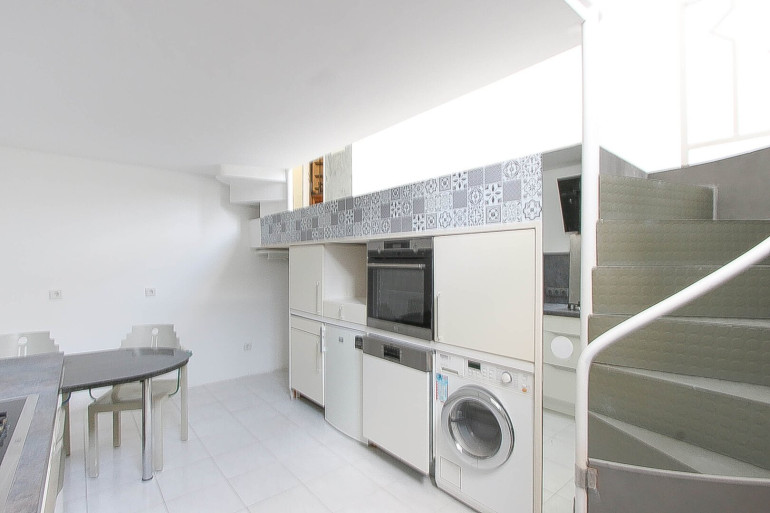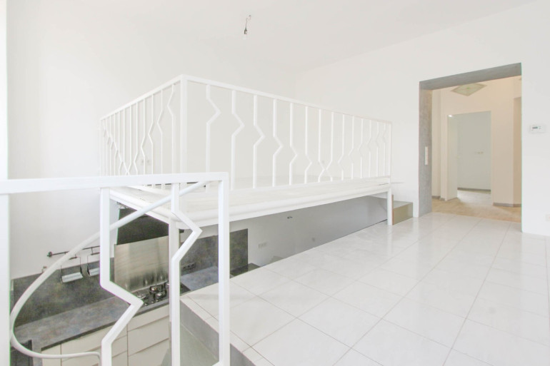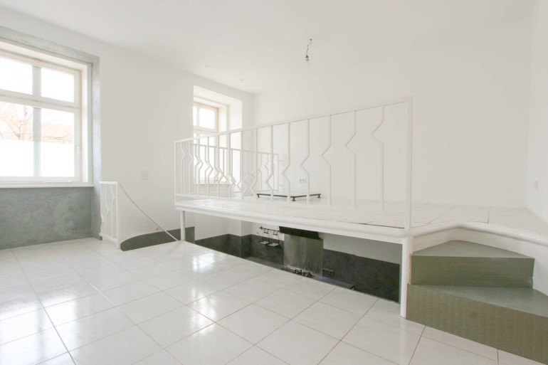 Die Wohnung begeistert durch ihre außergewöhnliche Raumaufteilung und ein einzigartiges Wohngefühl. Der großzügige, helle Wohnbereich verfügt über ein Halbgeschoss, wo sich die moderne Küche befindet. Diese offene, dennoch klar gegliederte Gestaltung schafft eine harmonische Verbindung von Wohnen und Kochen.