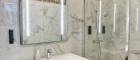 + Bad mit bodengleicher Dusche, Waschbecken und Handtuchwärmer