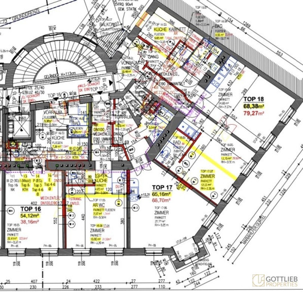 Die drei Wohnungen sind in ihrem Grundriss typische Apartments, wie die Bauweise in Wien um die Jahrhundertwende der Gründerzeit üblich war.