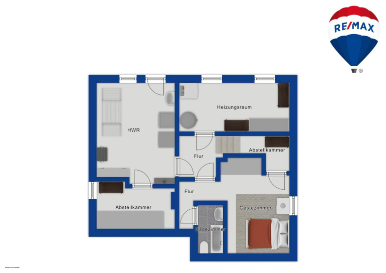 - Separates Gäste-WC, Abstellräume, Technik-/Heizraum