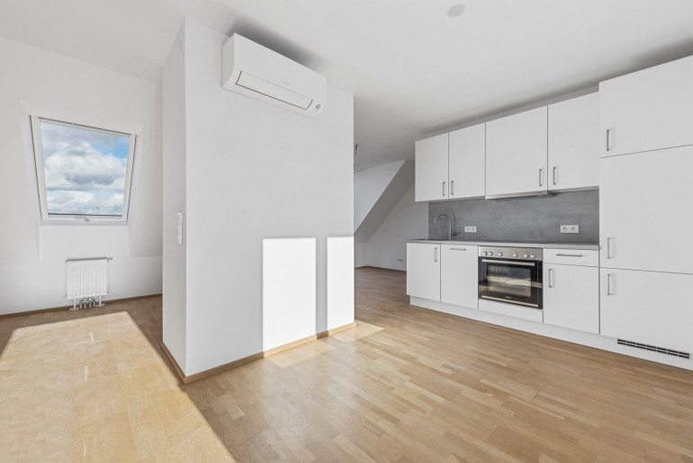 Im Inneren erwarten Sie schlüsselfertige Wohnungen, die mit attraktivem Eichenparkett, stilvoll verfliesten Bädern und vollausgestatteten Küchen ausgestattet sind. Die Dachgeschosswohnungen verfügen zusätzlich über Klimaanlagen der Premium-Marke Daikin, die auch an heißen Sommertagen für ein behagliches Wohnklima sorgen. Großzügige, jeweils den Wohnungen zugeordnete, Kellerabteile runden das Angebot ab.
