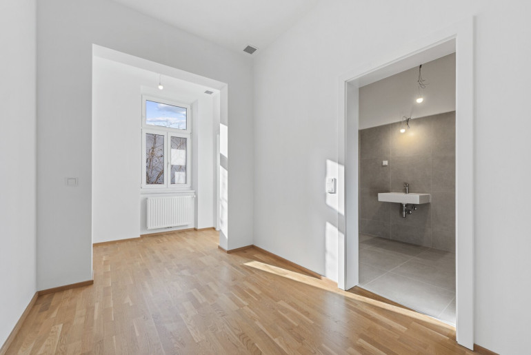Das Gebäude wurde einer umfassenden Generalsanierung unterzogen: zwei neue Dachgeschosse, ein Lift, erneuerte Fenster, eine sanierte Fassade und ausgewählte Materialien formen ein harmonisches Gesamtbild, das den Charme des Altbaus respektvoll in die Gegenwart holt.