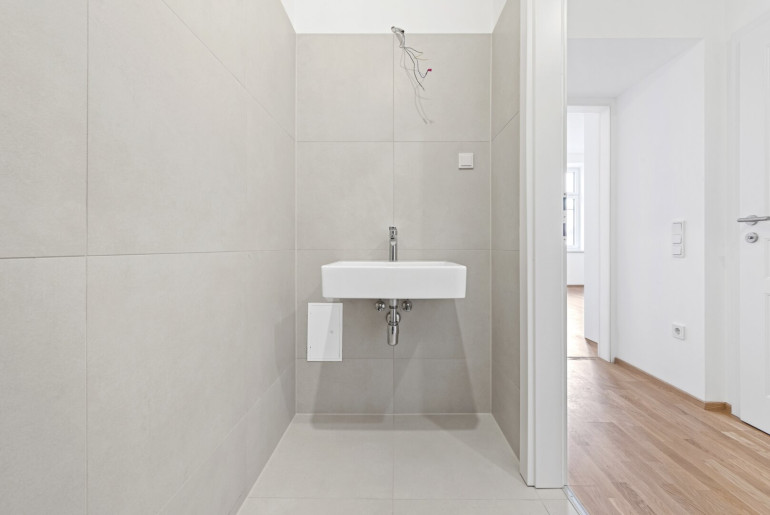 Der erste Eindruck lässt sofort erkennen, mit welcher Sorgfalt dieses Projekt umgesetzt wurde: Ein repräsentativer Entrée-Bereich mit kunstvollen Stuckelementen, indirekter Beleuchtung und dezent untermalter klassischer Musik empfängt Bewohner und Gäste gleichermaßen stilvoll. Die Gemeinschaftsflächen sind mit handverlegten Zementfliesen, typisch für die Wiener Altbauära, gestaltet – ein Detail, das die besondere Atmosphäre des Hauses zusätzlich unterstreicht.