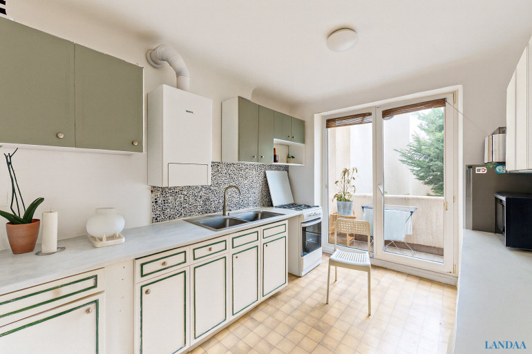 Die separate Küche ist mit einer modernen Einbauküche ausgestattet und bietet direkten Zugang zur Loggia, die sich zum Entspannen anbietet. Die Wohnung verfügt über: