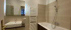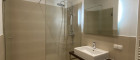 * dahinterliegendes Badezimmer mit Wanne und Dusche,