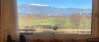 - Wohnzimmer (Panoramablick auf die Koralm) mit Kachelofen & Balkon
