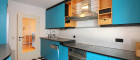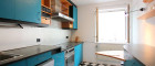 - getrennte Küche, komplett ausgestattet (Glaskeramik-Kochplatte, Backofen, Dunstabzug, Geschirrspüler, Kühlschrank) und mit kleinem Essplatz. Die Höhe der Arbeitsfläche: 100cm / 90cm