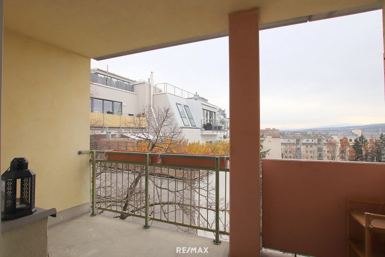 Hell, ruhig, hofseitige Loggia (südseitig) mit Ausblick in die Berge - 2-Zimmer Wohnung + getrennte Küche im 4.Liftstock eines sehr gepflegten Hauses in Penzing.