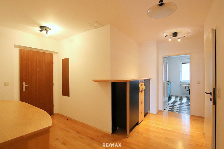 - geräumiges Vorzimmer (ca. 12m²) mit viel Stauraum und Zugang zu: Wohnzimmer, Küche, Schlafzimmer, WC, Abstellraum