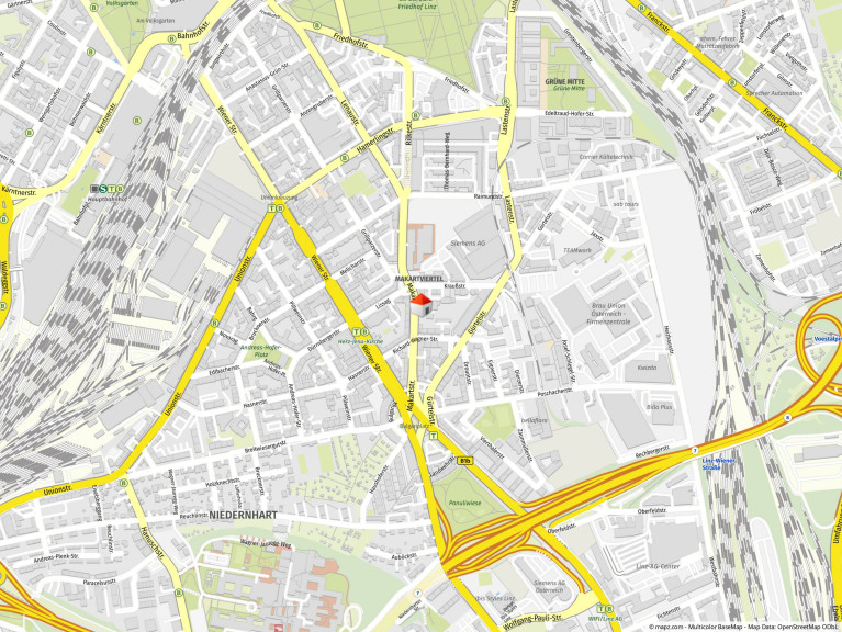 Parkplätze können in der hauseigenen Tiefgarage für netto EUR 80,- netto inkl. BK - zzgl. 20% Ust. angemietet werden.