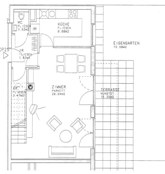 4 Zimmer Maisonette Wohnung mit Eigengarten in 1050 Wien!Die Wohnung ist wie folgt aufgeteilt: