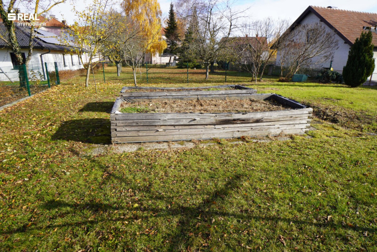 Der umzäunte Garten ist der perfekte Ort, um die Natur zu genießen. Hier können Sie nach einem langen Arbeitstag die Seele baumeln lassen, während die Kinder im Grünen herumtollen. Genießen Sie jeden Tag und verweilen Sie in Ihrem eigenen Garten um dem stressigen Alltag entkommen zu können. Der Garten verfügt über eine gepflasterte Terrasse, einen schön angelegten Naturgarten mit Baumbestand, einem Holzunterstand und diversen Hochbeeten.