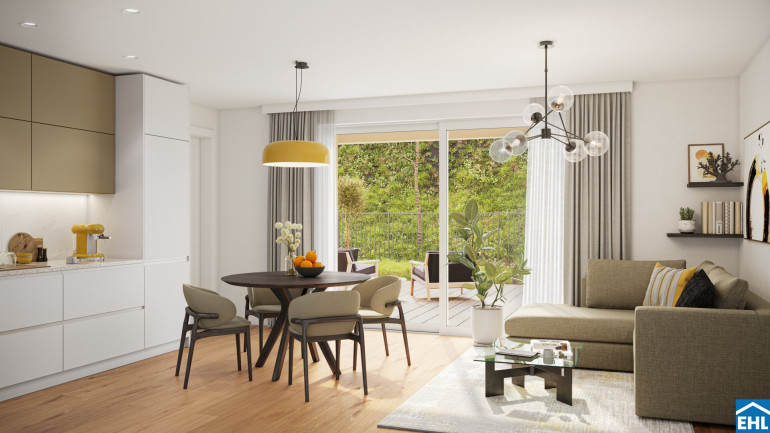 Die hochwertige Ausstattung des Projekts „Trikona“ und die energieeffiziente, innovative Holz-Hybrid-Bauweise spiegeln exzellentes Design und Qualität wider. Zeitlose Unterputzarmaturen der Firma Grohe sorgen für eine elegante Optik und praktische Nutzung. Das Weitzer Echtholzparkett schafft eine warme, natürliche Atmosphäre in den Räumen, während die moderne Smart Home Anlage das Wohnen komfortabel und intelligent macht – von der Steuerung der Beleuchtung bis hin zu Heizung und Sicherheitssystemen. Für Energieeffizienz sorgen eine Wärmepumpe mit Fußbodenheizung sowie eine innovative Kühlung via Roll Over System, die das ganze Jahr über für angenehme Temperaturen sorgt. Hochwertige Feinsteinfliesen im Badezimmer und in der Küche verleihen den Räumen einen eleganten, pflegeleichten Look. Echtholzböden ergänzen das harmonische Gesamtbild und unterstreichen die Qualität der Ausstattung. Besonders hervorzuheben ist, dass alle verwendeten Materialien, Marken und Subunternehmen aus Österreich stammen. Damit wird nicht nur höchste Qualität garantiert, sondern auch die lokale Wirtschaft nachhaltig unterstützt. Diese Kombination aus österreichischer Handwerkskunst, Ästhetik und Funktionalität macht das Wohnerlebnis in „Trikona“ einzigartig.