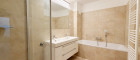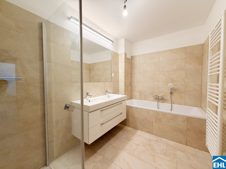 - Badezimmer mit Badewanne, Dusche und Doppelhandwaschbecken