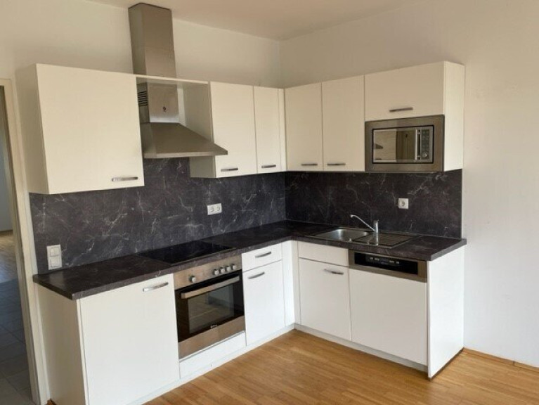 Die moderne Wohnung liegt im ersten und letzten Obergeschoß eines im Jahr 1994 errichteten Mehrparteienhaus. Sie besteht aus einem geräumigen Wohnzimmer mit integrierter Küche, von dem man auf den großen Balkon kommt. Weiters verfügt sie über zwei Schlafzimmer, einen Vorraum, einen Abstellraum und ein Badezimmer mit Badewanne und ein WC.