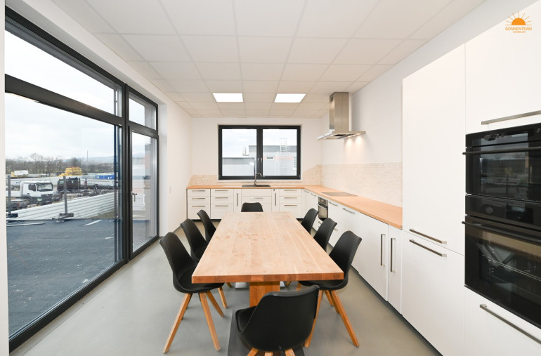 Eine große, möblierte Küche lädt zum gemeinsamen Mittagessen oder zu Pausen ein.