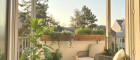 Vom Wohnraum aus gelangt man auf den überdachten Balkon, der einen gemütlichen Rückzugsort im Freien bietet.