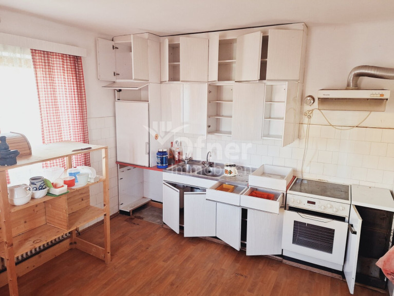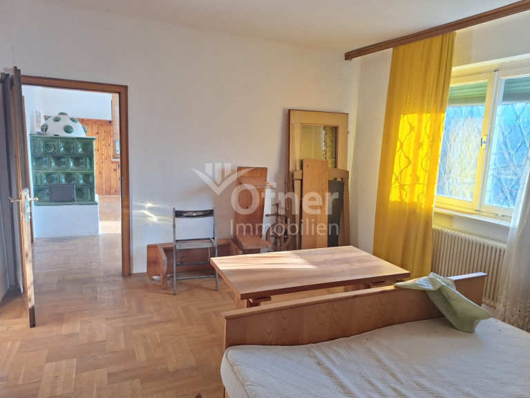 Im Erdgeschoß befindet sich ein Wohn-Esszimmer mit Kachelofen, die Küche, ein Schlafzimmer, ein Badezimmer mit WC. Das Dachgeschoß bietet 3 Zimmer, ein Badezimmer mit Wanne, ein separates WC, und einen Balkon. Die Ausstattung ist einfach, aber gepflegt. Das gesamte Wohnhaus ist unterkellert, wobei es vier Kellerräume gibt. Beheizt wird das Haus mittels Ölzentralheizung, im Vorraum befindet sich zudem ein zweiter Kachelofen.