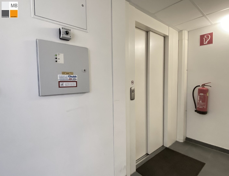 Fliesen, Parkett, Fußbodenheizung, Wohnküche / offene Küche, Personenaufzug, Westbalkon, Bad mit Fenster, Dusche, Tiefgarage