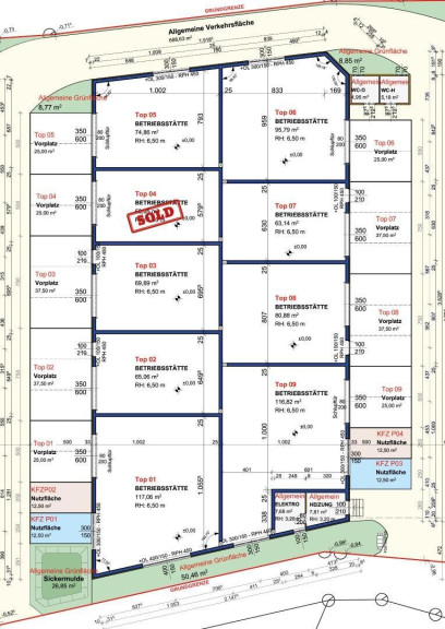 Betriebs-/Produktions- oder Lagerhallen mit Flächen von 63 - 117 m² zu verkaufen in Vöcklabruck / Nähe Varena (Top 01)