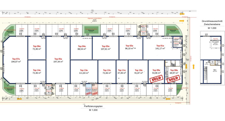Betriebs-/Produktions- oder Lagerhallen mit Flächen von 47 - 197 m² im Grünwallpark Ansfelden zu verkaufen