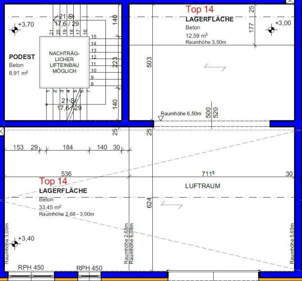 o Schaffung zusätzlicher Flächen (Büro) durch Einbau einer Zwischenebene möglich