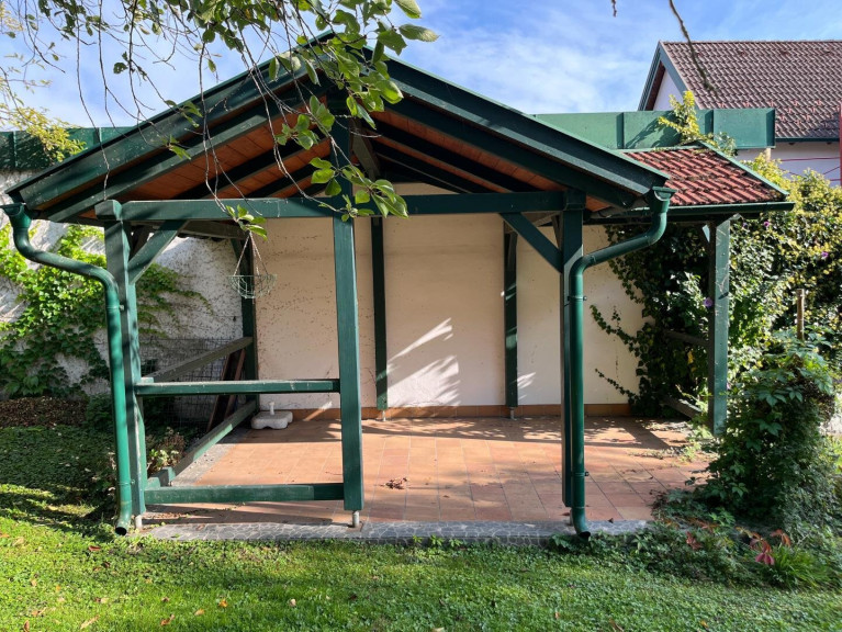 • idyllischer Garten mit altem Baumbestand und Gartenlaube