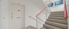 Von der Straße (Paul-Ehrlich-Gasse) führt der Weg über 21 Stufen zur Stiege 2, anschließend gelangt man über ca. 2,5 Stockwerke (43 Stufen) zur Wohnung.