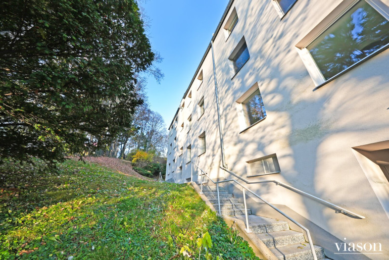 Besonders hervorzuheben ist der schöne Grünblick aus allen Zimmern – Wohnzimmer, Küche und Balkon bieten einen direkten Blick in den hauseigenen Garten und die grüne Umgebung.
