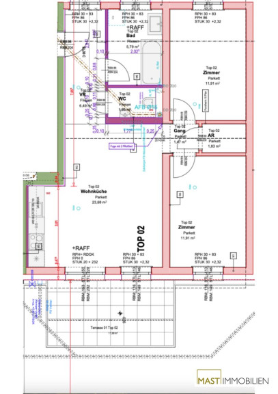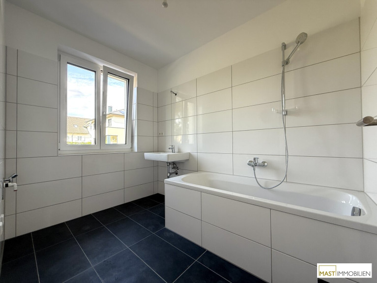 Nach Eintritt in die Wohnung gelangen Sie in ein ca. 6,50 m² großes Vorzimmer mit ausreichend Platz für Ihre Garderobe. Die knapp 24 m² große Wohnküche wird mit einer EWE Einbauküche inkl. Geräte ausgestattet. Beide Schlafzimmer sind ca. 12 m² groß und bieten daher ausreichend Platz für ein Bett + Kleiderschrank. Getrennt werden die beiden Schlafräume auch einen ca. 1,80 m² großen Abstellraum. Selbstverständlich ist das Badezimmer dass mit einer Wanne, Waschbecken & WM - Anschluss ausgestattet ist, getrennt vom WC begehbar. Dieses verfügt natürlich auch über ein Waschbecken. Im Mietpreis inkludiert ist 1 KFZ Stellplatz.