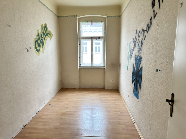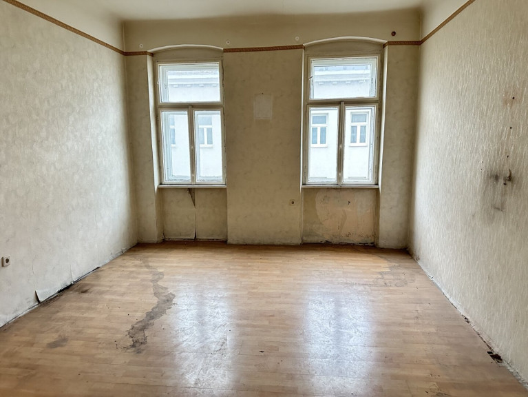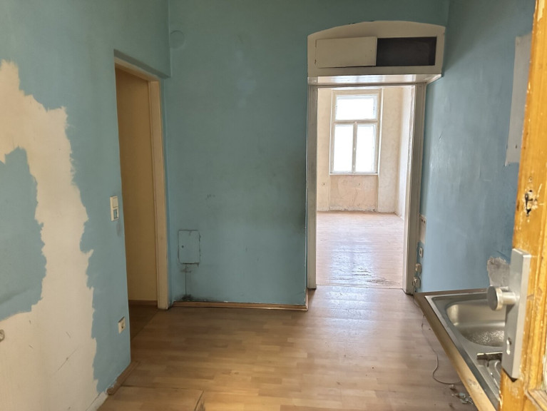 Die Wohnung besteht aus 2 Zimmern, wobei es die Möglichkeit gibt, das Badezimmer im Vorraum zu installieren, um einen zusätzlichen 3. Raum zu gewinnen. Der Stadtblick von den Fenstern auf die Habichergasse sorgt für eine angenehme Wohnatmosphäre.
