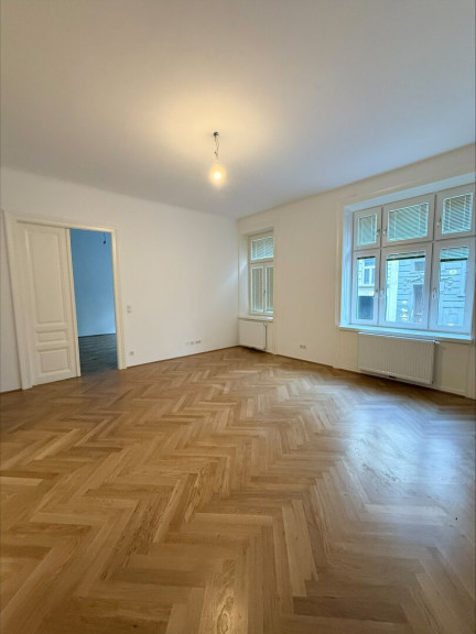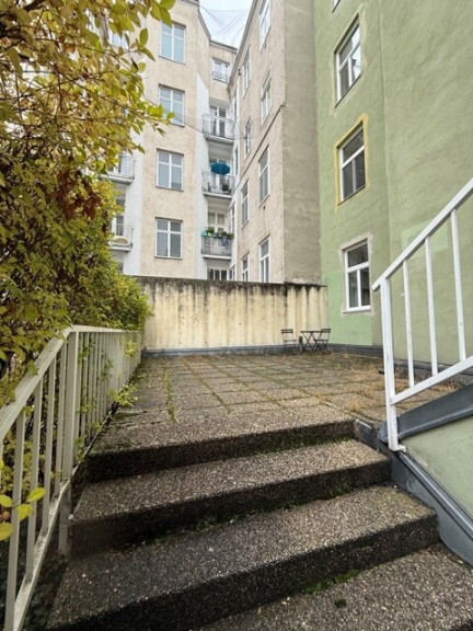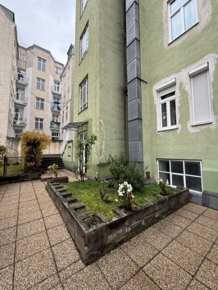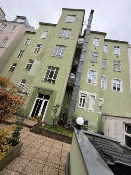 Die Wohnung liegt im Hochparterre im vorderen Teil der Liegenschaft. Dieser Teil wurde 1913 errichtet und ist somit ein Altbau und der hofseitige Teil wurde 1982 (Neubau) errichtet.