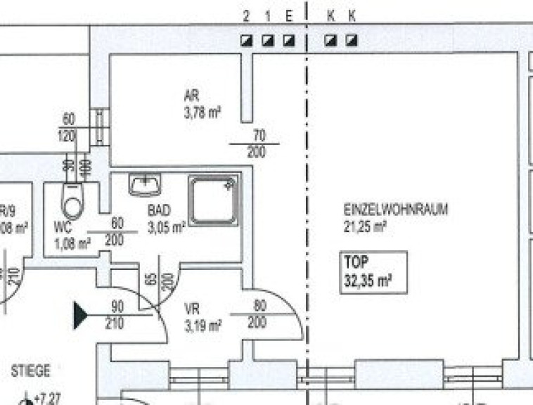 Wohn-/Schlafzimmer, separate Einbauküche, Vorzimmer,