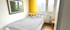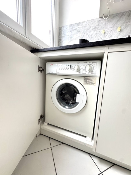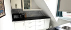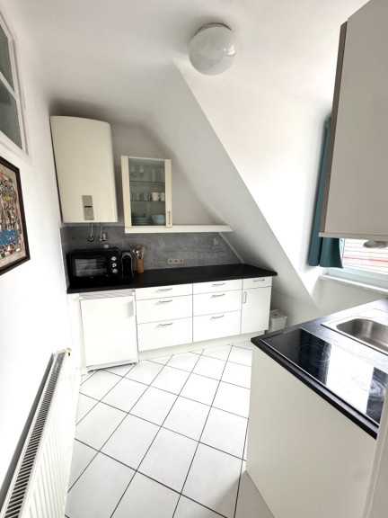The living room is practical and well proportioned, offering enough space for a comfortable living and dining area. The separate kitchen is fully equipped and functionally arranged. The bedroom is quietly positioned and offers sufficient space for a double bed and storage.